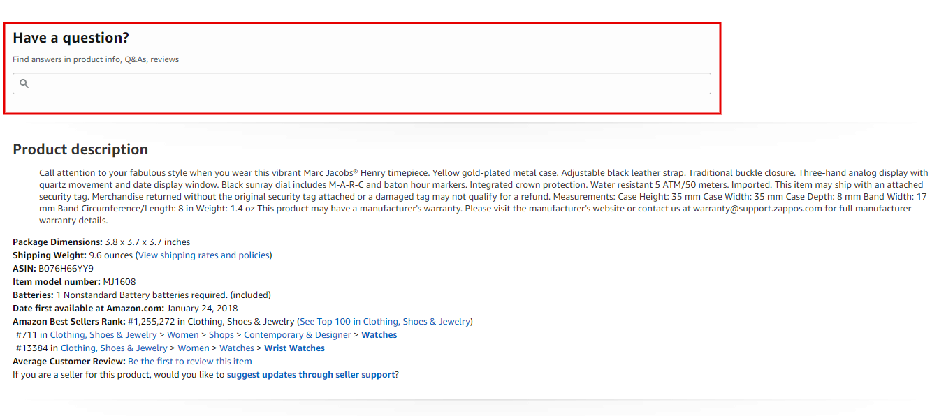 В карточку товара добавлена специальная строка поиска по описанию продукта, вопросам и ответам, отзывам покупателей. Это значит, что пользователю не обязательно изучать весь текст описания товара — по запросу сайт выдаст ему все материалы, в которых присутствует упоминание заданных им аспектов.