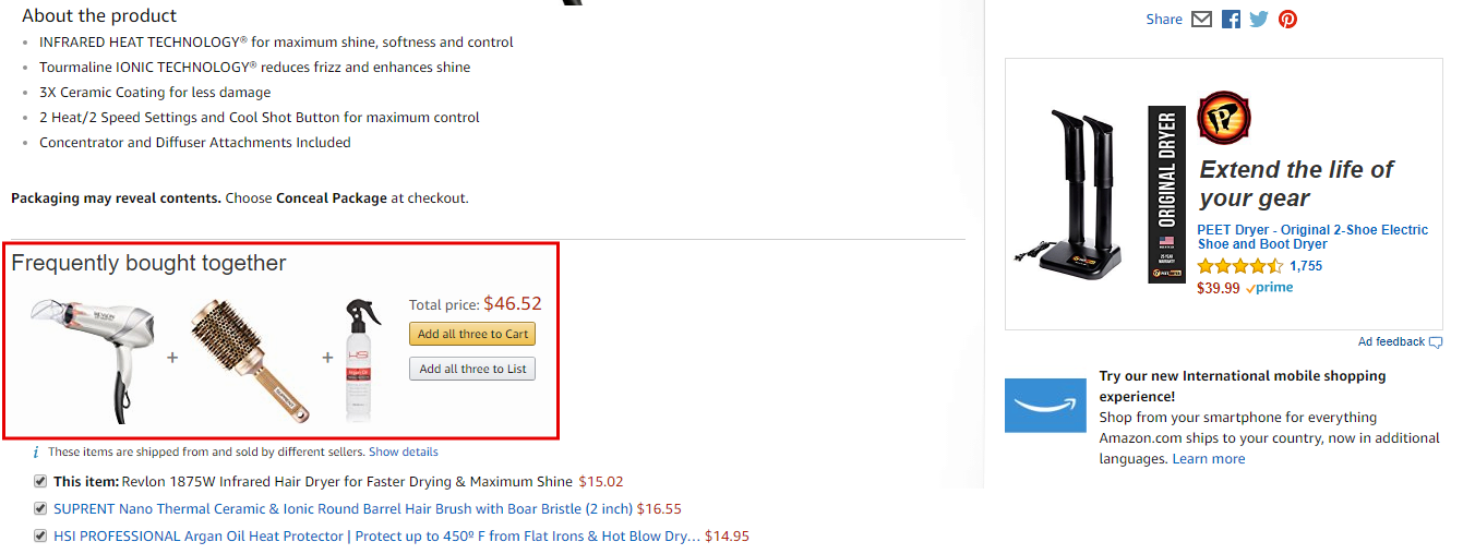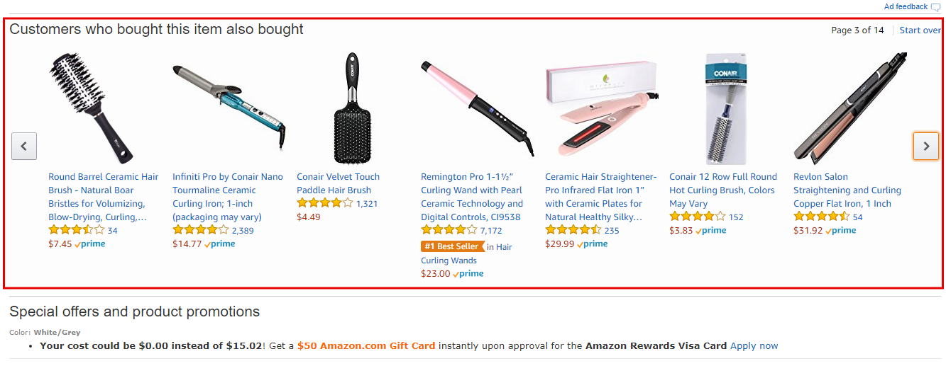 Amazon успешно использует своих целях психологию потребителей за счет задействования триггера социального доказательства в блоках рекомендаций товаров «Вместе с этим товаром часто покупают» и «Клиенты, купившие данный продукт, также приобрели».