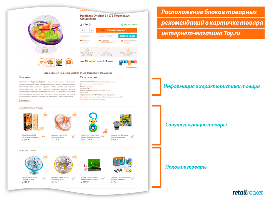 Внедрение персональных рекомендаций в карточку товара позволило интернет-магазину Toy.ru увеличить выручку в онлайн-канале на 5%.