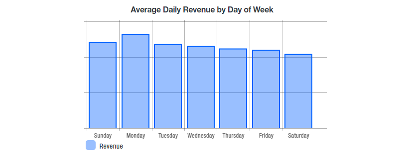 С помощью отчета Rush Hours & Busiest Days Report можно определить период времени и день недели, когда отмечается самая высокая посещаемость вашего интернет-магазина и когда пользователи совершают максимальное количество покупок.