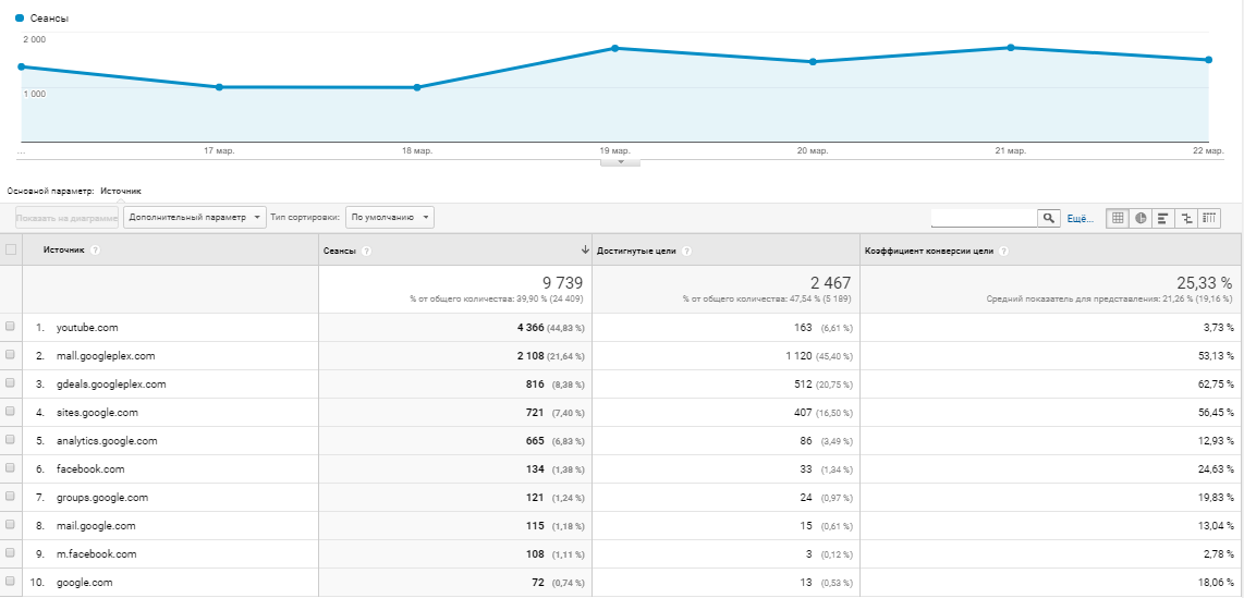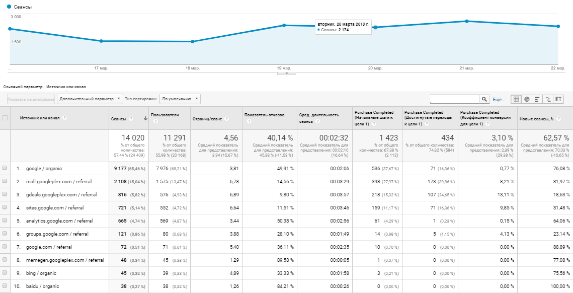 Формат отчета объединяет сразу несколько показателей, таких как общее число конверсий и суммарная ценность конверсий интернет-магазина в денежном эквиваленте.