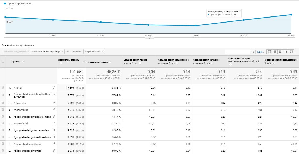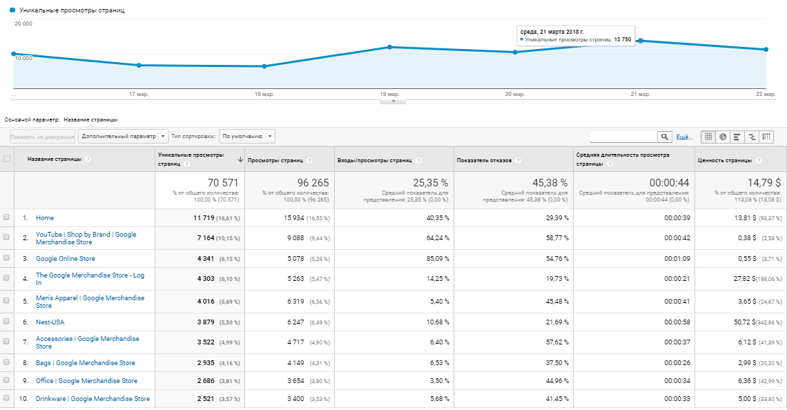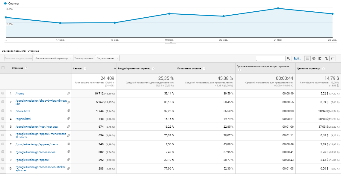 С помощью этих данных можно определить, какие страницы интернет-магазина имеют наибольший процент конверсии, и оценить их ключевые метрики.