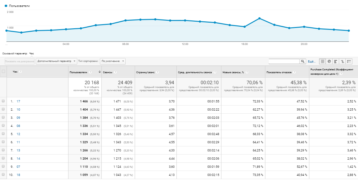 Эта информация поможет выбрать подходящий период для проведения маркетинговых кампаний, чтобы запустить акции или рекламу именно тогда, когда на вашем сайте находится наибольшее количество посетителей.