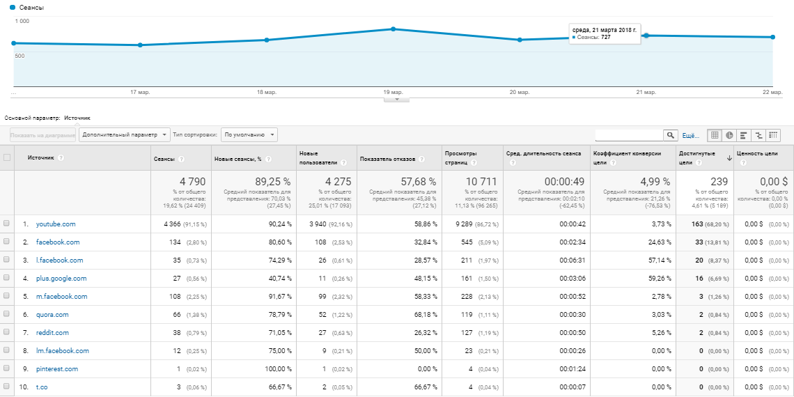 С помощью отчета Traffic Acquisition from Social Media можно оценить конверсию трафика из соц.сетей.