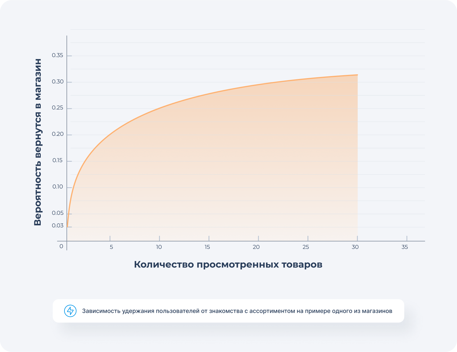Пользу знакомства с ассортиментом мы затронули в нашем исследовании, где обнаружили положительное влияние среднего числа просмотренных покупателем карточек товаров на LTV.