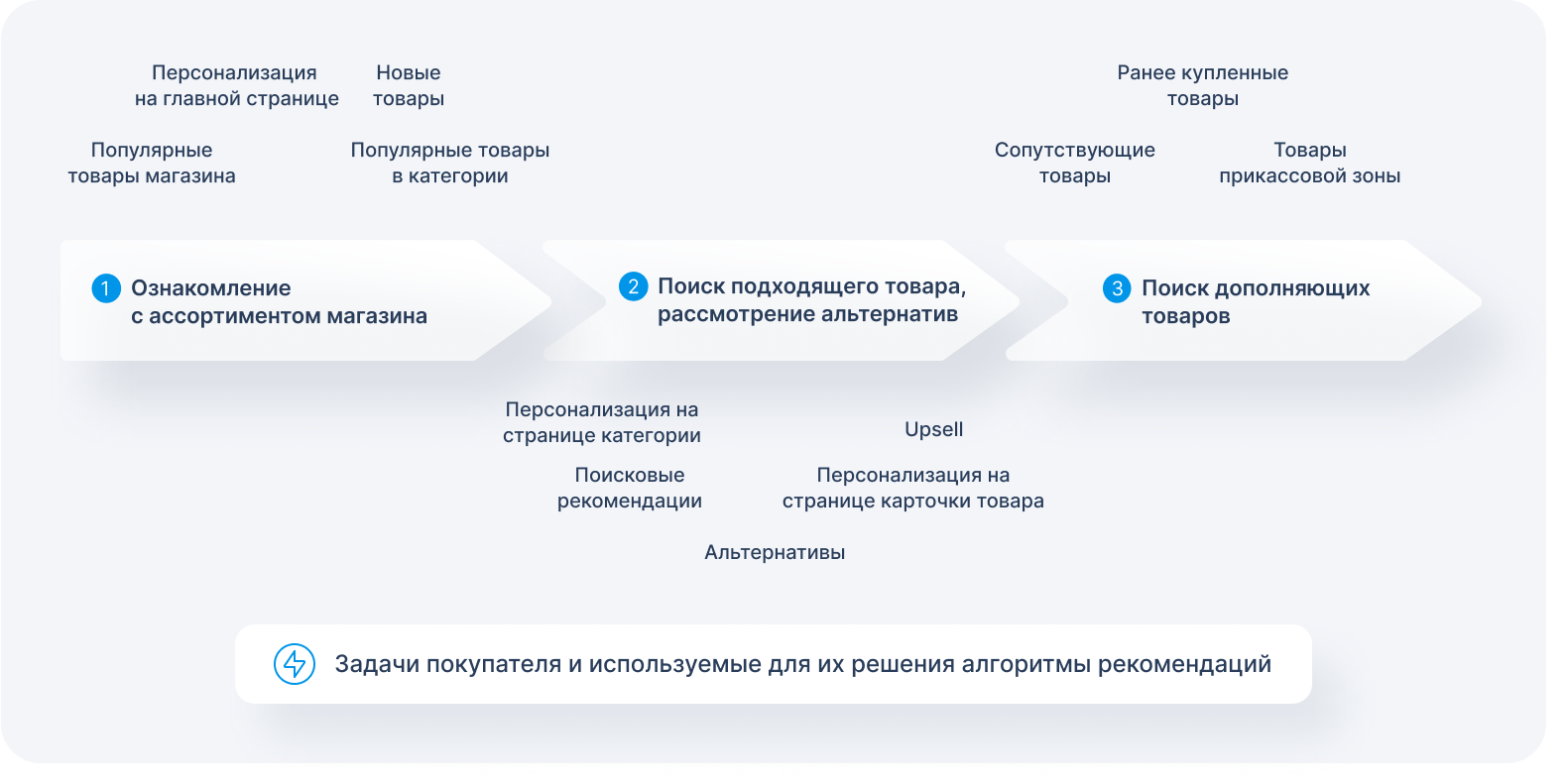 Рекомендации должны помогать покупателям магазина эффективно выполнять их задачи. В качестве примера таких задач можно назвать: