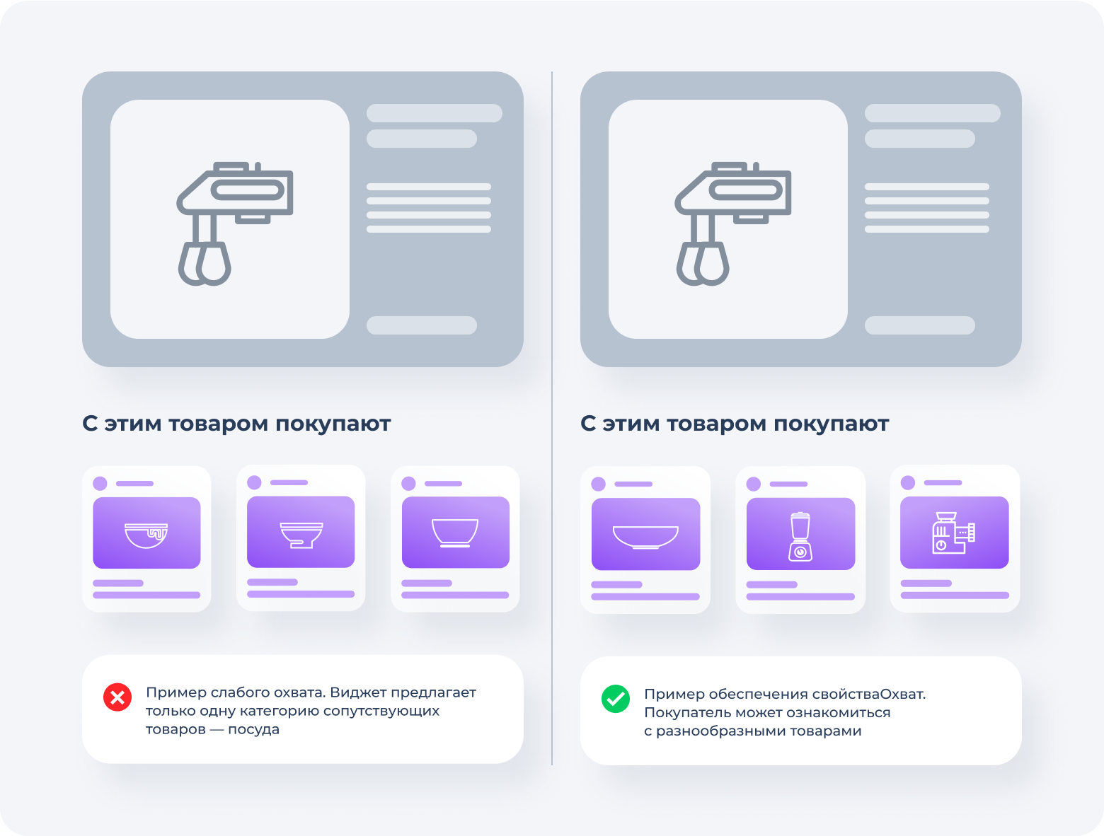 3. Покрытие — предоставлены рекомендации к каждому товару, категории и так далее
