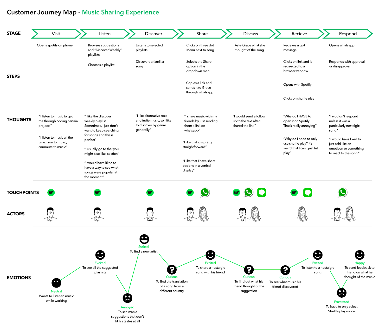 Некоторые компании строят карту не в таблице, а в виде визуальной диаграммы: линия времени, на которой отражены точки касания и эмоции клиента. Это особенно полезно, когда карта обсуждается в кросс-функциональной команде. Это основа для составления cjm клиента и понимания логики его поведения.
