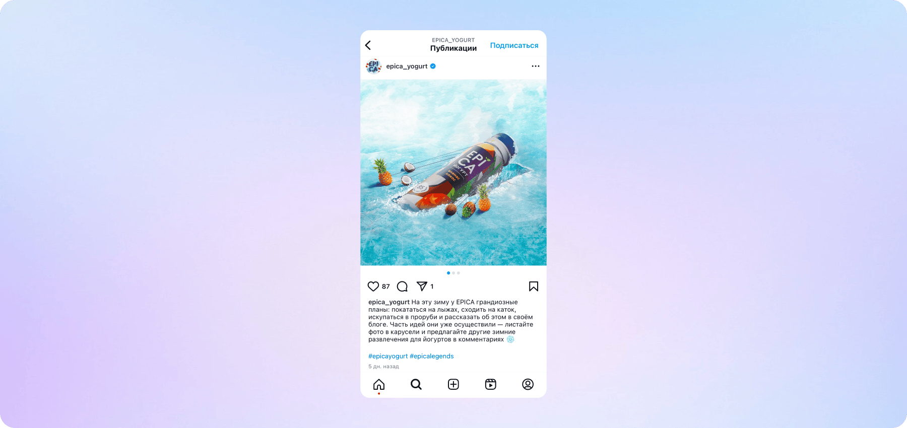 Пищевая промышленность. Российский производитель йогуртов Epica продвигает свой бренд с помощью ИИ-иллюстраций. В социальных сетях бренда фото и видео сгенерированы нейросетями. Яркий и необычный визуал привлекает внимание аудитории и делает бренд узнаваемым.