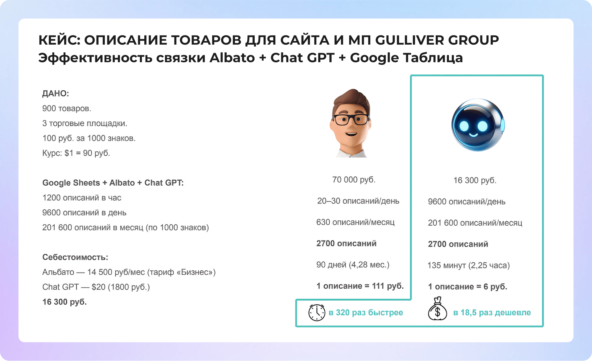 Описание товаров — ещё один процесс, который компании удалось оптимизировать с помощью нейросетей. ИИ формирует карточки для сайта и мобильного приложения в 320 раз быстрее и в 18,5 раз дешевле.