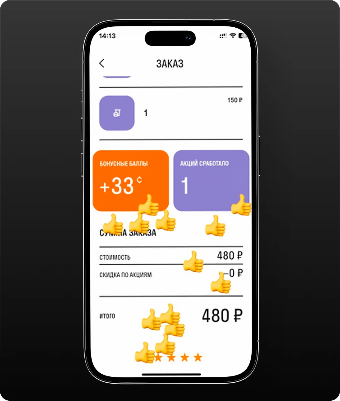 Через 20 минут после покупки пользователь Cofix Club получает пуш с предложением оставить отзыв, а при открытии приложения появляется поп-ап с формой для сбора отзыва. Чтобы не раздражать пользователей, которые часто делают заказы, Cofix настроили логику так, что пуши приходят максимум 1 раз в 72 часа.