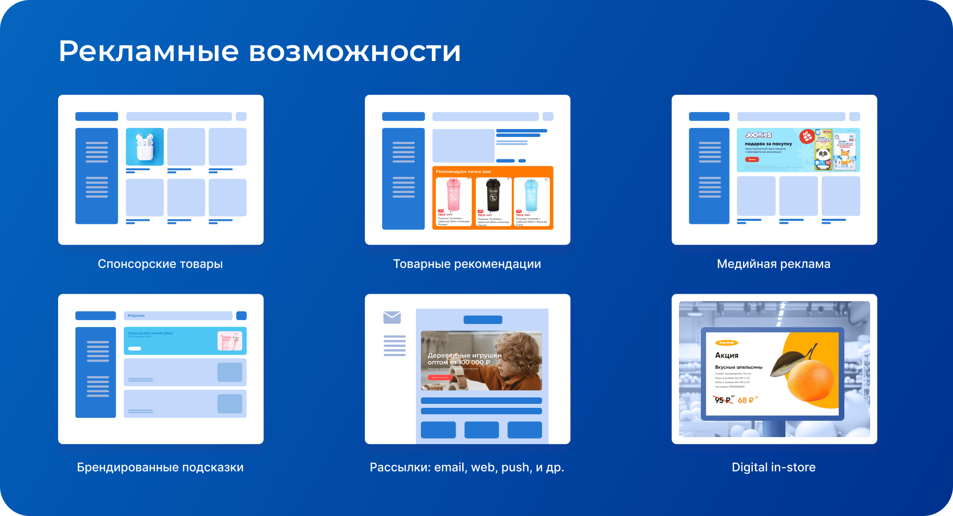 В Retail media есть множество форматов рекламы: