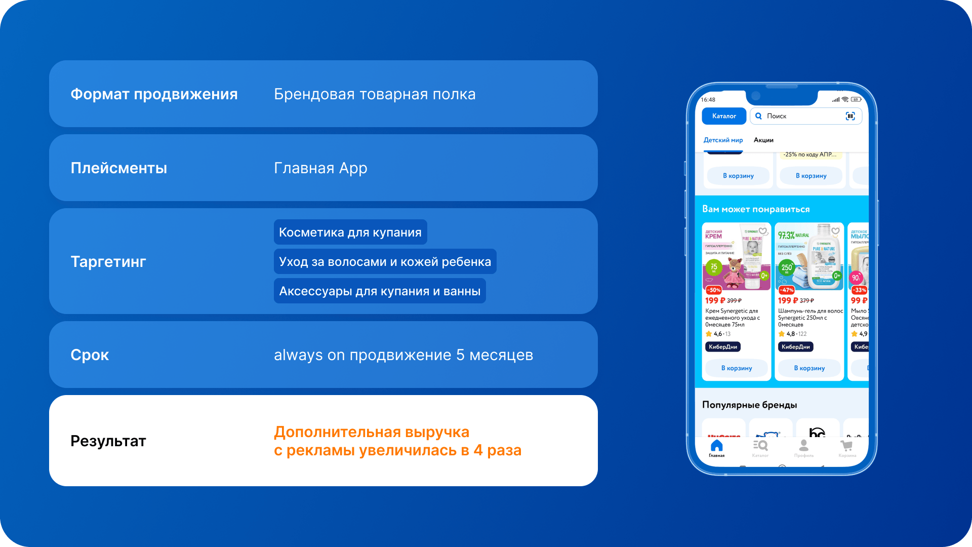 Кейс бренда детского питания. Кейс бренда детского питания. Один из брендов детского питания решил продвигать свои продукты — пюре и каши — в товарных рекомендациях на сайте и в приложении «Детского мира».
