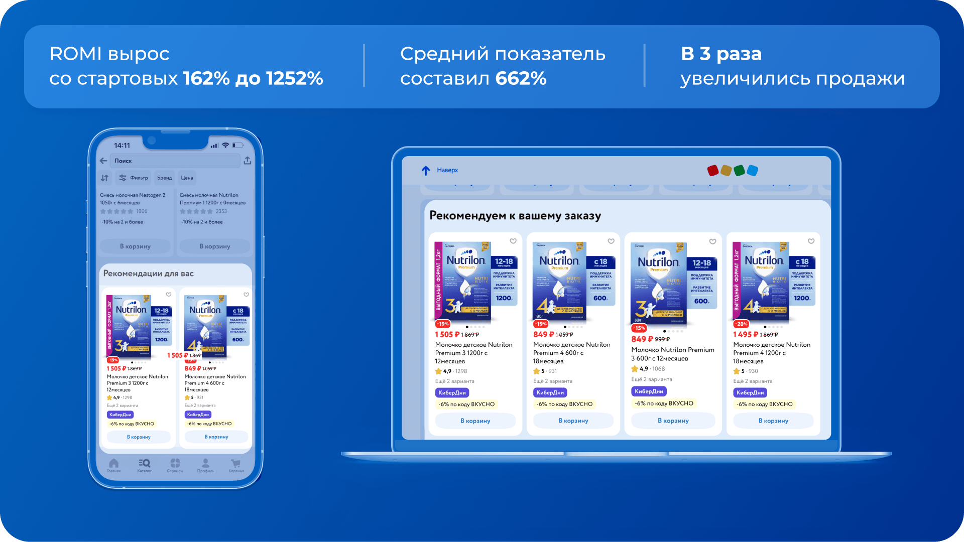 Нишевые интернет-магазины монетизируют свой трафик с помощью adTech-платформ. Среди успешных примеров их использования — SYNERGETIC, который увеличил продажи в 2 раза уже через 2 месяца продвижения на площадке «Детского мира». Продажи бренда Nutrilon за 3 месяца использования платформы выросли в 2,6 раза, возврат на инвестиции в рекламу превысил 800%.