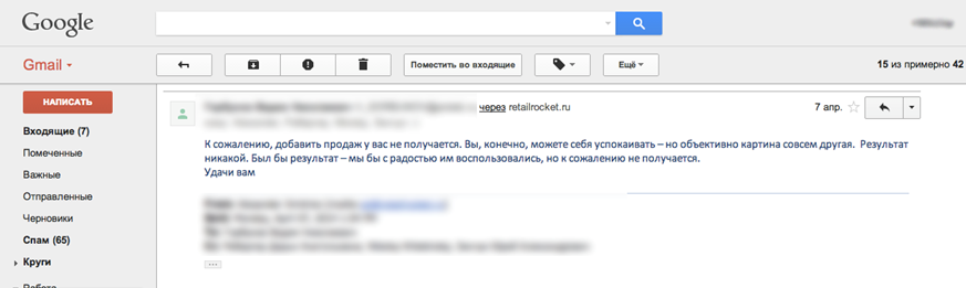 После составления отчетов результатов мы получили такое письмо от клиента:
