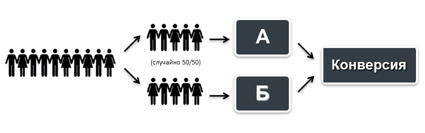 Цель на втором шаге: не получить победителя, т.е. в двух сегментах с одинаковыми версиями сайта не должно быть разницы по ключевым показателям.