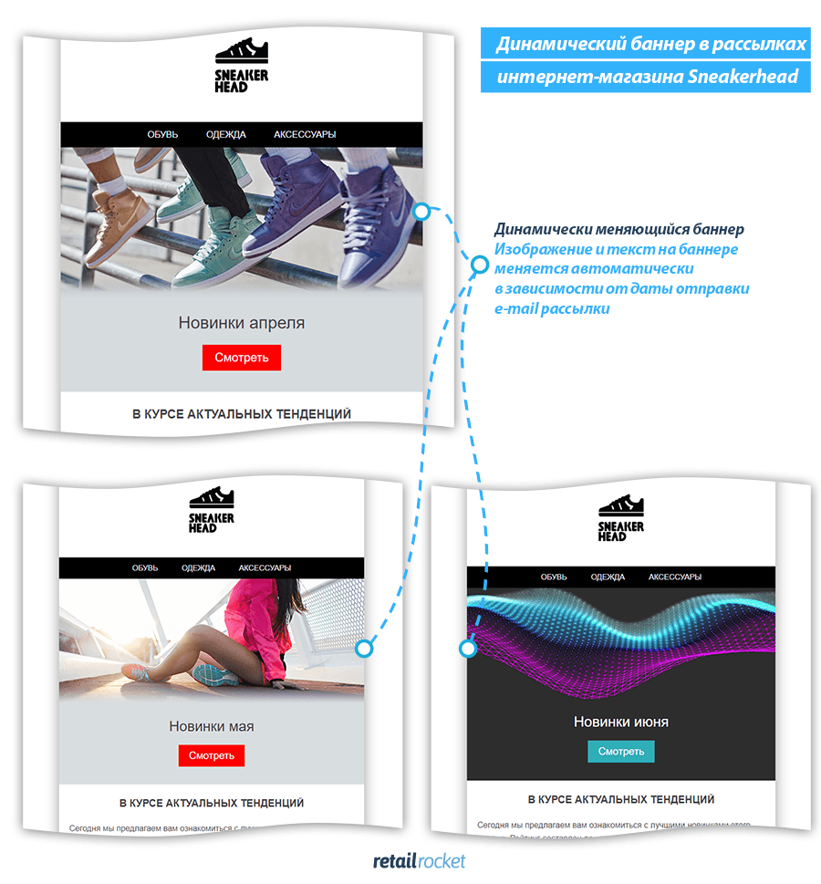 Для этого важно продумать логику формирование темы письма и подготовить разные баннеры для каждого месяца. В сочетании с персональными рекомендациями товаров, каждое письмо для подписчика получается по-настоящему уникальным.
