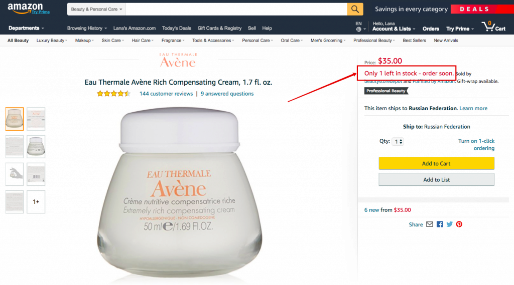 Этот принцип активно использует Amazon, мотивируя пользователей совершать заказ как можно быстрее, пока товар еще есть в наличии.