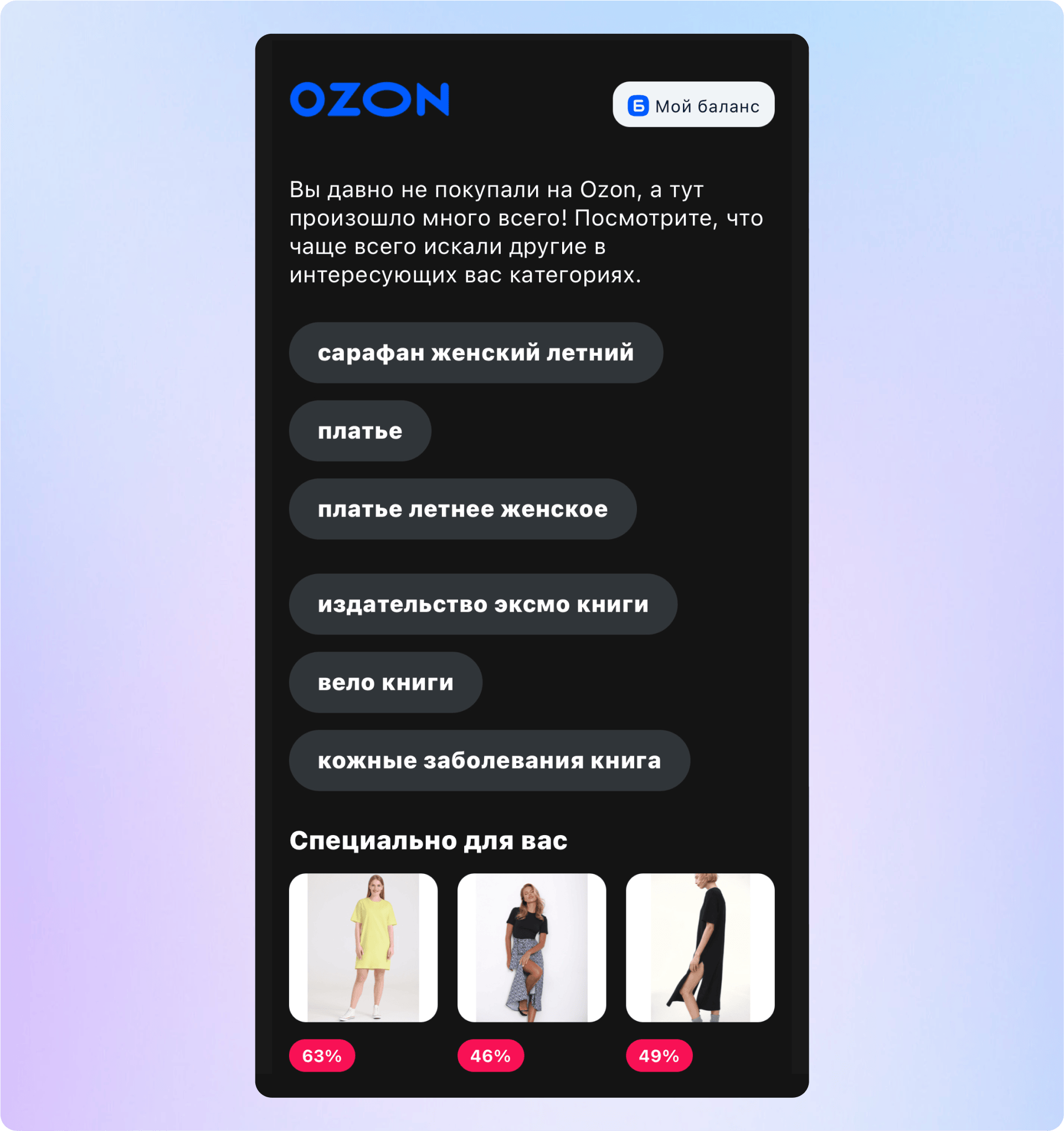 Ozon, присылает подборку популярных товаров клиентам, которые давно не заказывали