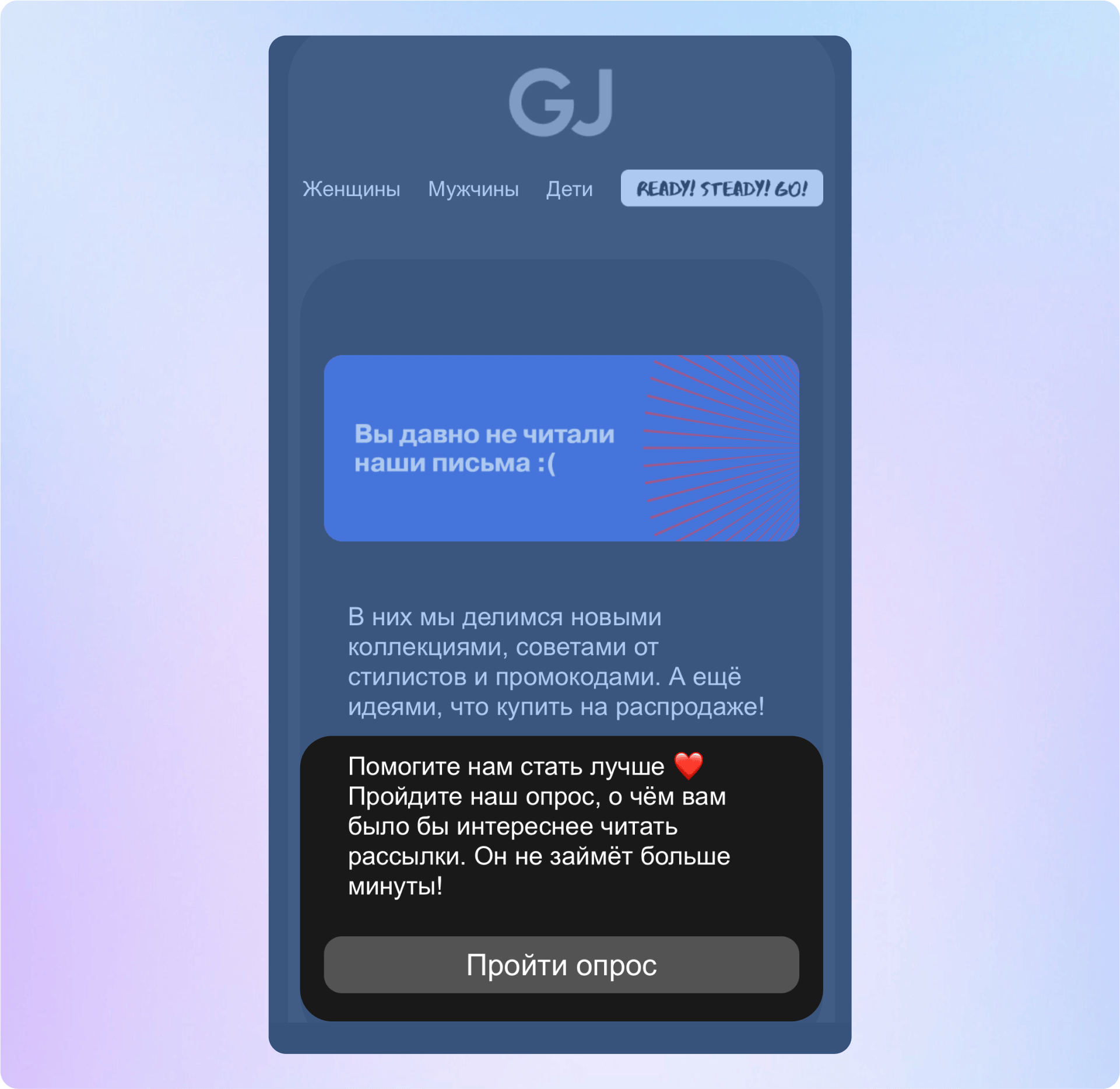 Gloria Jeans просит неактивных клиентов пройти опрос