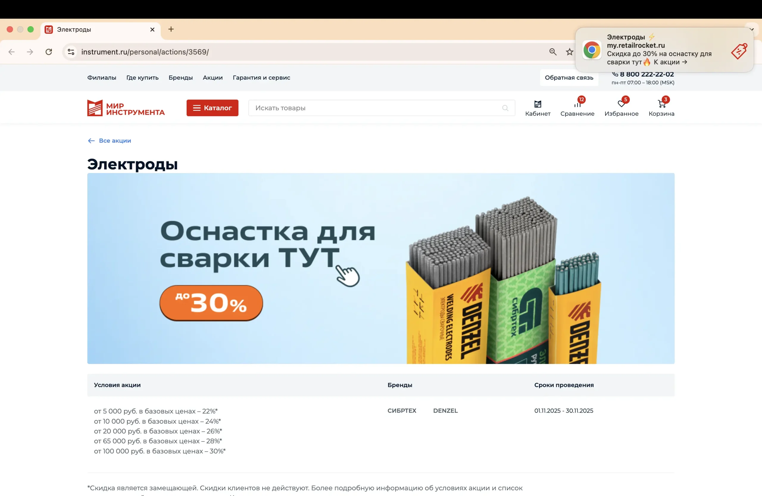 Персонализация в «МИР ИНСТРУМЕНТА» изначально запускалась не как инструмент привлечения, а как способ масштабировать выручку с текущей B2B-базы. Поэтому блоки рекомендаций намеренно не размещаются на главной странице и не показываются неавторизованным пользователям. Все сценарии персонализации работают только с существующими клиентами.