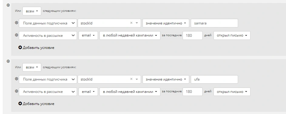 Платформа Retail Rocket позволяет строить сложные сегменты на основе множества различных параметров, чем также пользуются маркетологи МаксидоМ. Сегментация аудитории в зависимости от региона имеет большое значение для компаний, имеющих физические точки продаж, ведь намного разумнее предлагать покупателям в первую очередь те товары, которые находятся на ближайших складах, чем доставлять их издалека. Поэтому Максидом часто делает рассылки для клиентов в конкретном регионе, выбирая при этом активных подписчиков, которые взаимодействовали с письмами в течение определенного периода.