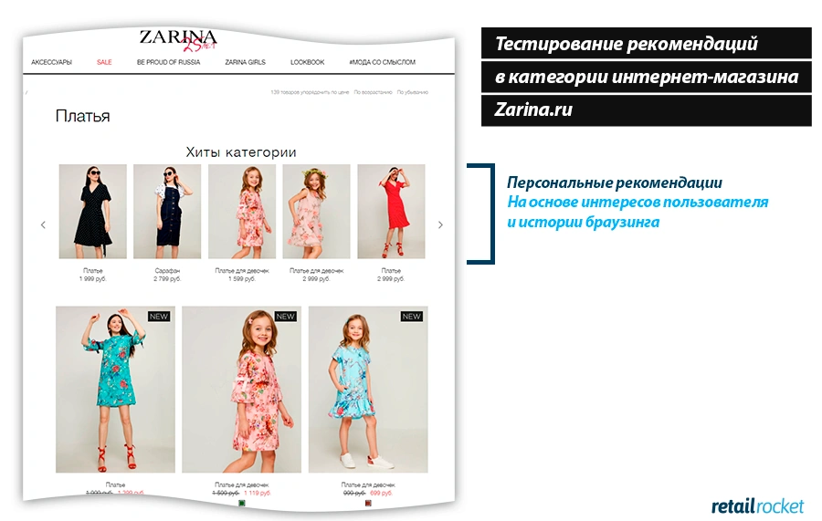 Для того, чтобы определить, какая конфигурация блоков рекомендаций в категории наиболее эффективна для аудитории сайта Zarina.ru, Growth Hacker’ами Retail Rocket было протестировано несколько вариантов.