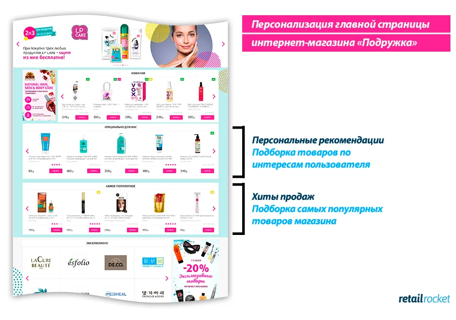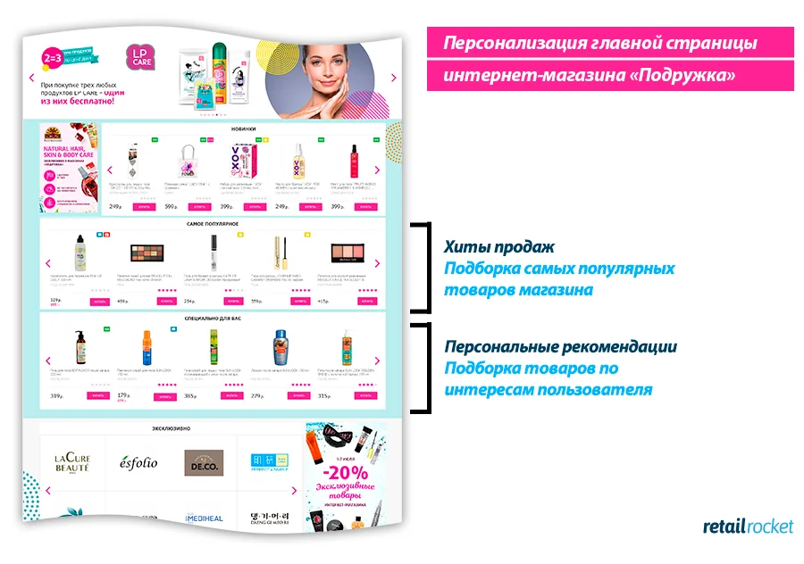 Одна из приоритетных целей «Подружки» — с каждым днем становиться лучше для клиентов. Поэтому для улучшения онлайн-обслуживания компания обратилась к Retail Rocket. Было необходимо: