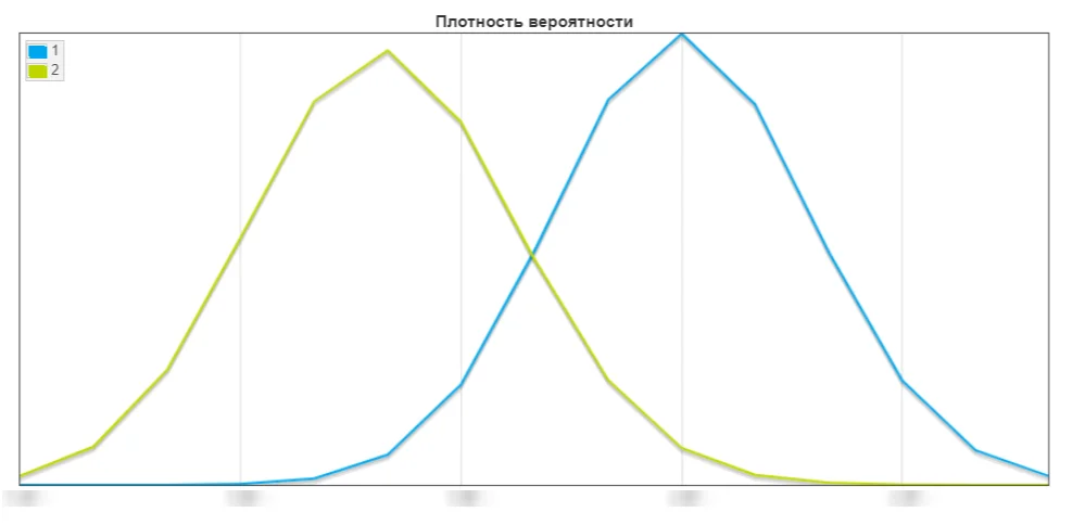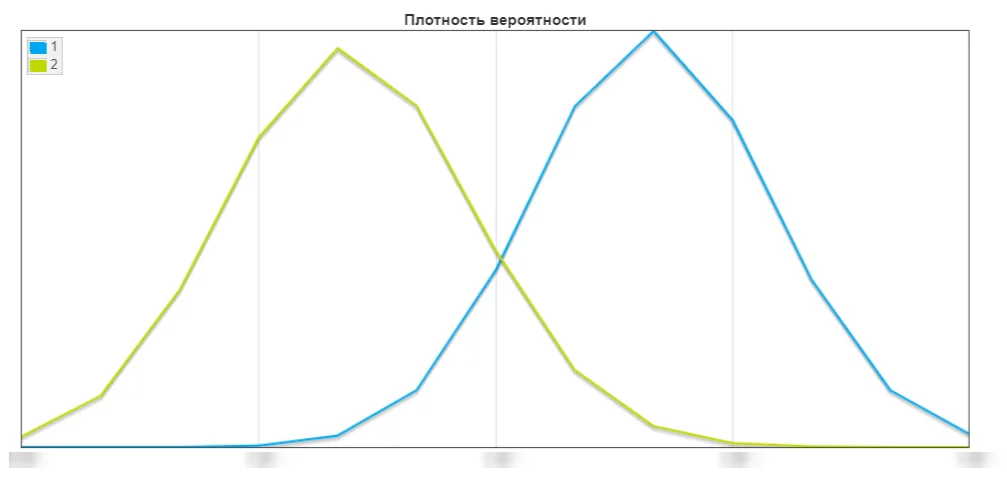 График пересечения плотностей вероятности: