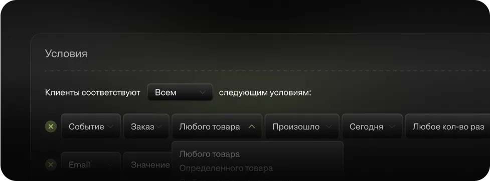 Гибкие условия таргетинга в реальном времени по интересам и поведению посетителей
