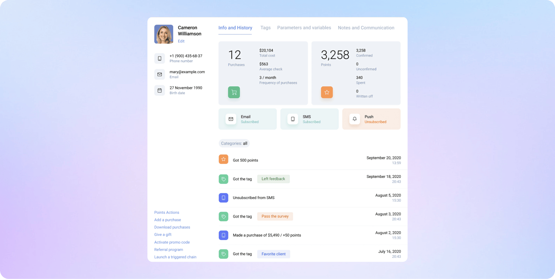 Это помогает повышать лояльность, увеличивать число продаж и средний чек, возвращать активность пользователей, которые давно не взаимодействовали с компанием и так далее.
