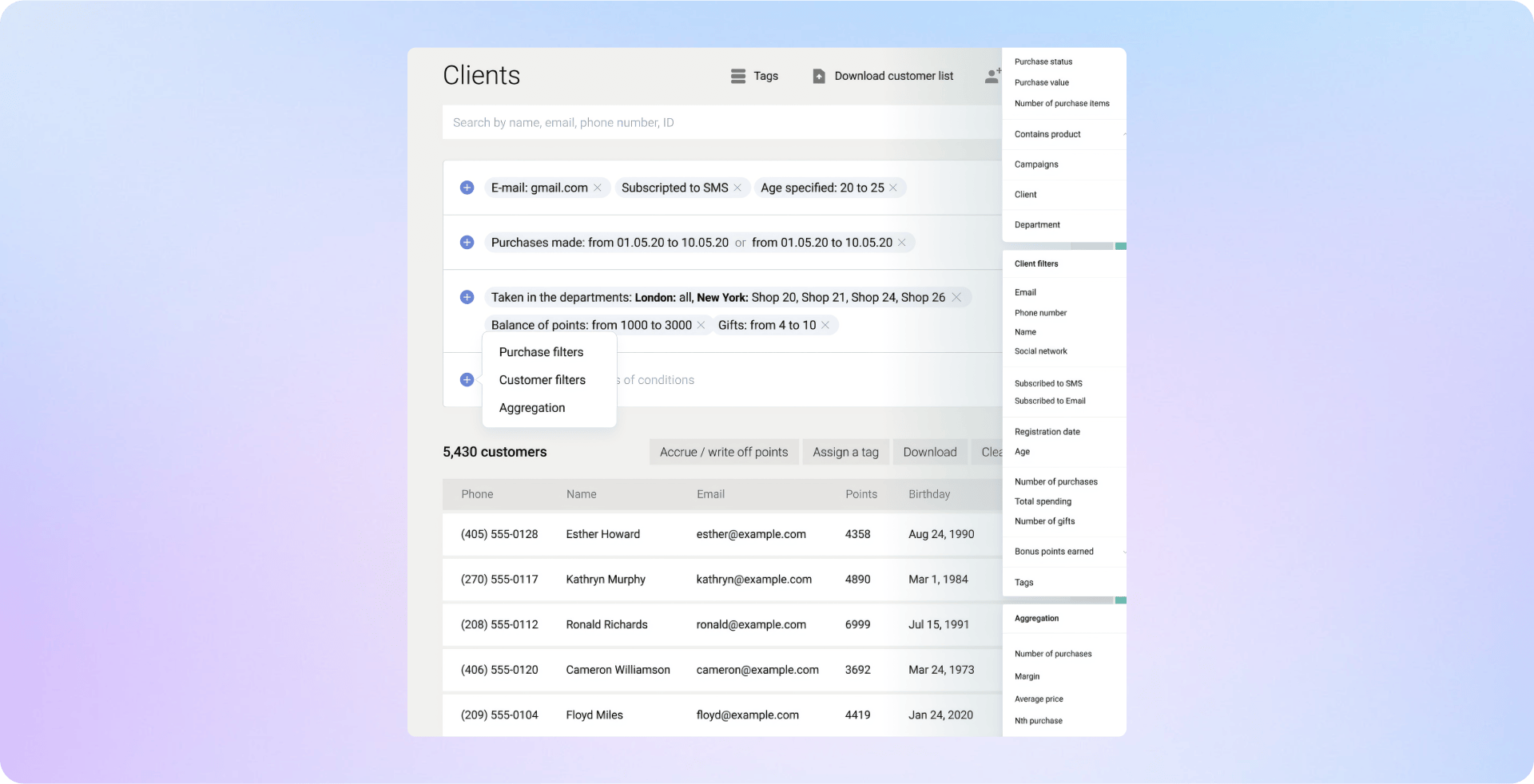 Гибкая фильтрация в платформе клиентских данных (CDP) Retail Rocket Group