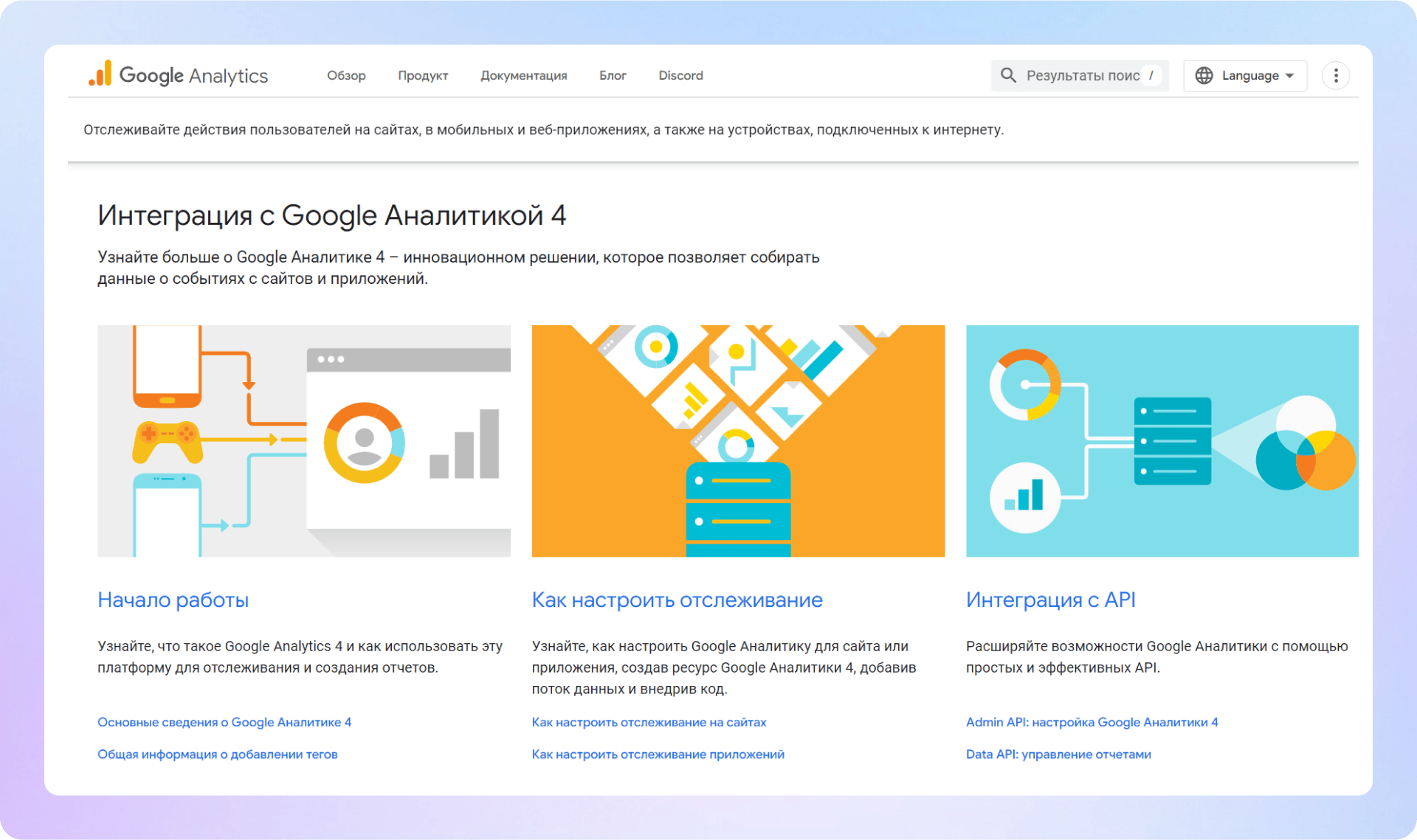 Сервис Google Analytics для отслеживания поведения пользователей на сайтах и в приложениях