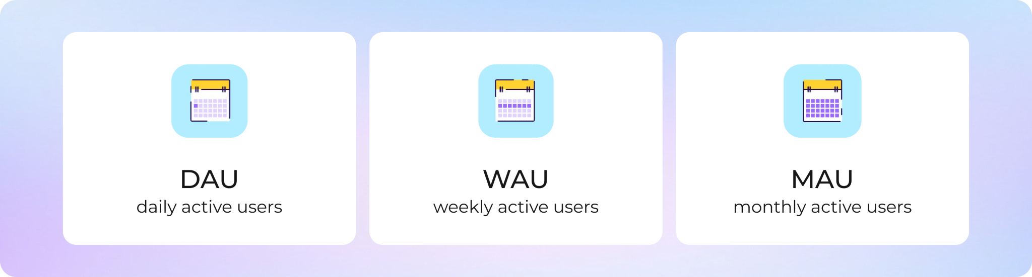 Метрики DAU, WAU и MAU помогают анализировать активность пользователей сайтов или приложений в течение дня, недели или месяца. Разберёмся, как работают эти показатели, как их правильно подсчитать и что делать, чтобы их улучшить.