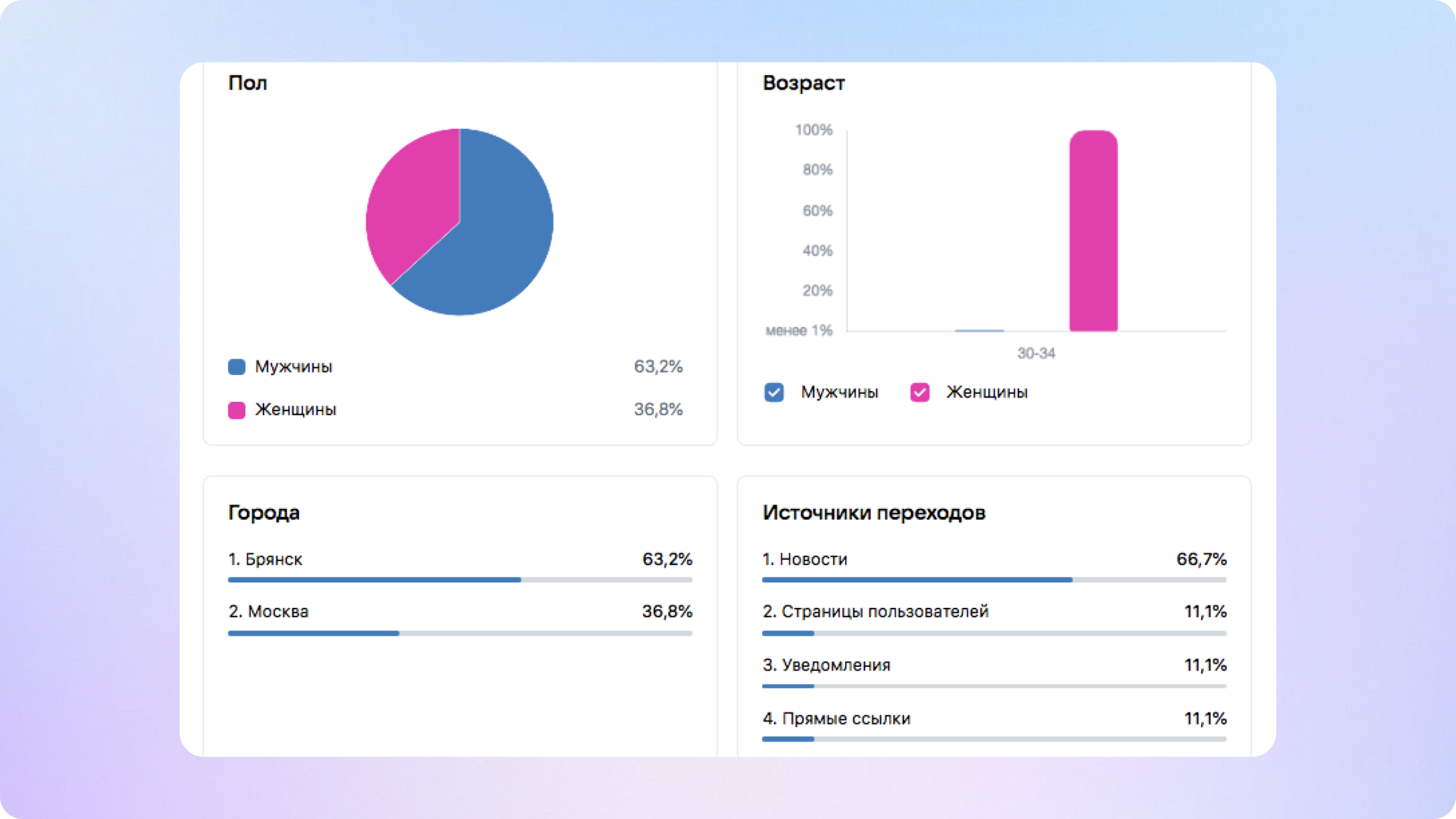 Этот анализ предоставляет ценные данные о том, как клиенты взаимодействуют с брендом. Для анализа соцсетей обычно используют статистику из личного кабинета сообщества или специальные платформы, такие как LiveDune, TrendHERO, Pur Ninja, Popsters и другие. Для анализа сайта — Google Analytics, Google Ads, Яндекс.Метрика и Яндекс.Директ.