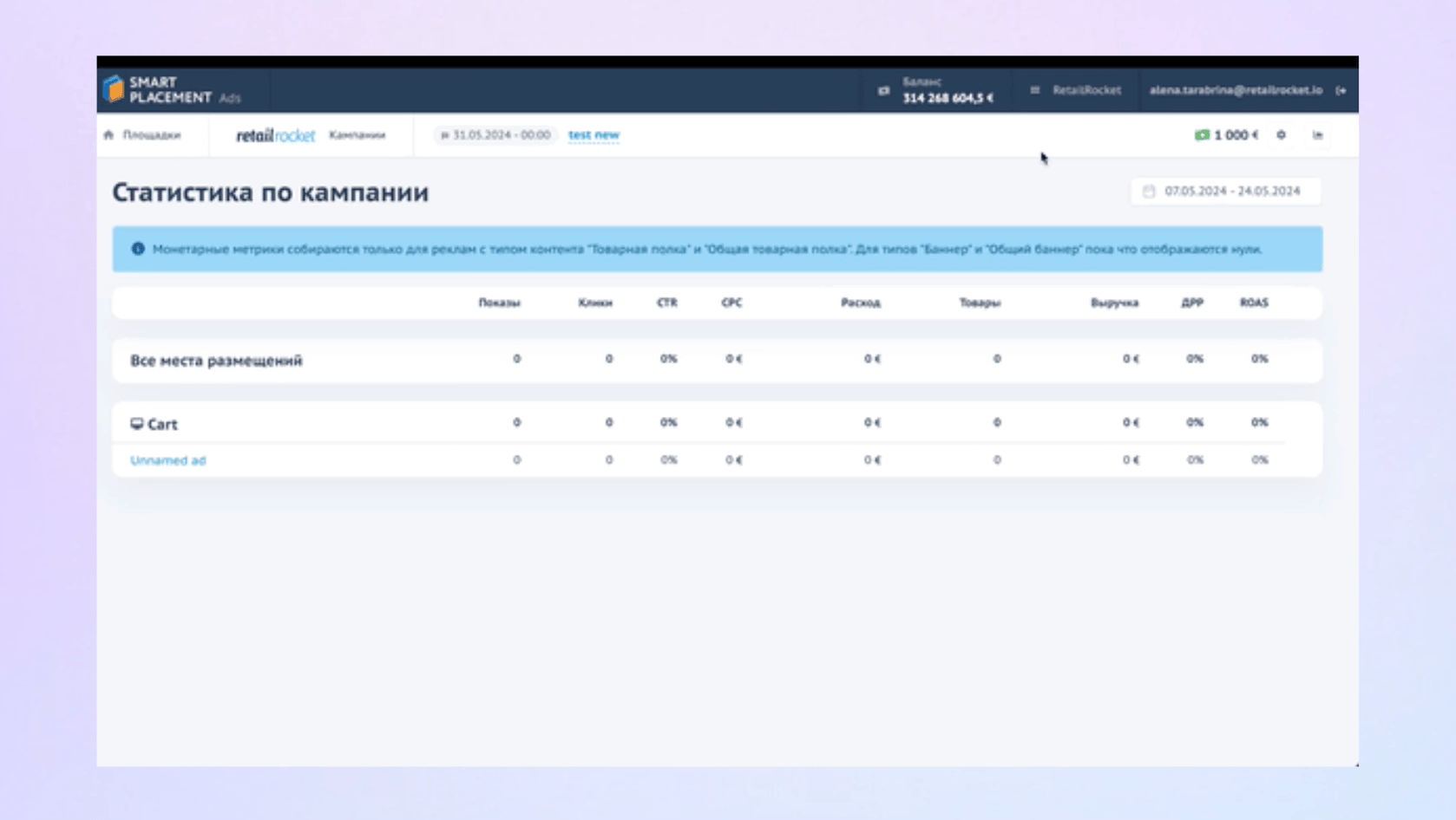Adtech-платформа Smart Placement Ads — продукт Retail Rocket Group, который объединяет онлайн-площадки и бренды. Платформа позволяет онлайн-площадке продавать таргетированные рекламные места на страницах сайта и в мобильном приложении, а брендам — продвигать свои товары на целевую аудиторию. В статье рассказываем, как новые возможности Smart Placement Ads помогают анализировать результаты рекламных кампаний и управлять продвижением товаров.