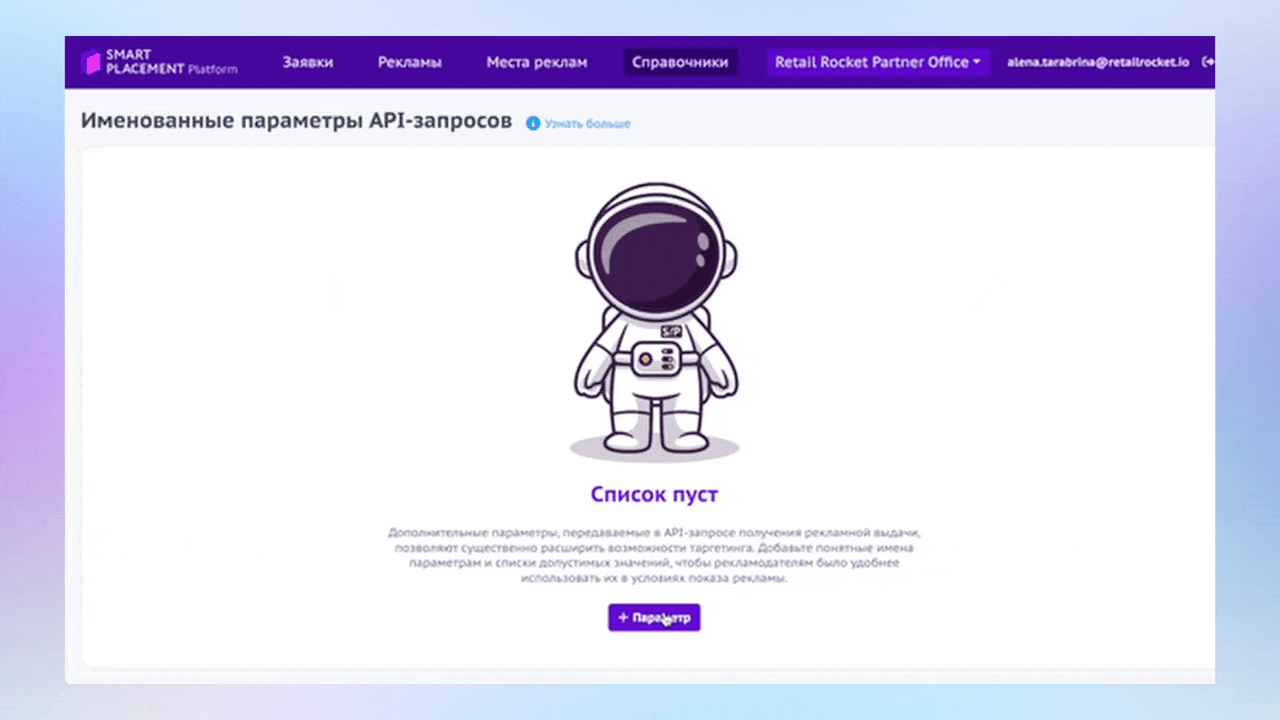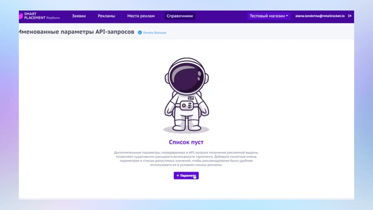 При создании параметра отдельно прописывается название, указываемое в API-запросе, и имя, которое отображается в личном кабинете рекламодателя.